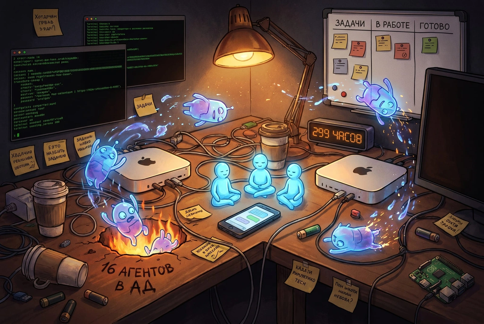Полтора месяца в LLM-зоопарке: 299 часов, 2 Mac mini, 16 убитых агентов и немного здравого смысла